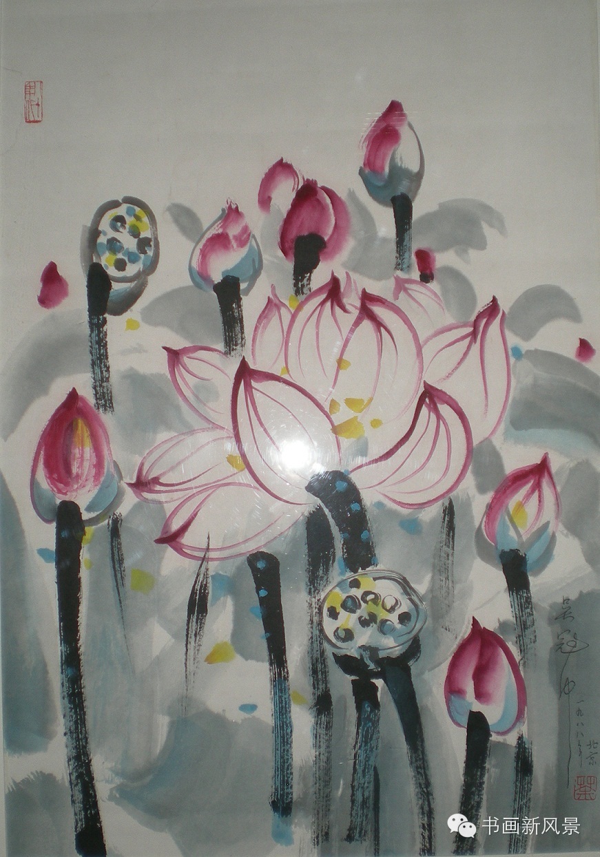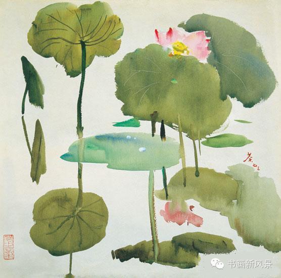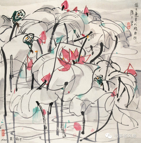 这是吴冠中画於1990年的一件荷花精品,图中以线、彩、墨三色将荷花的神韵画出,清新秀雅,别具一格。吴冠中先生爱画荷,是借以抒发一种心境,释放一种情怀。他将生活和感受都融到画里,有了一种超脱的意境。他常说他总是梦见故乡的池塘,总是梦见夏天来到时野草张狂恣意,夏虫呢喃轻鸣,野鸭息於丛间,蜻蜓低回流连,蚊子乱成一片。童年的景象,在这么多年后重现在他的梦里挥之不去。