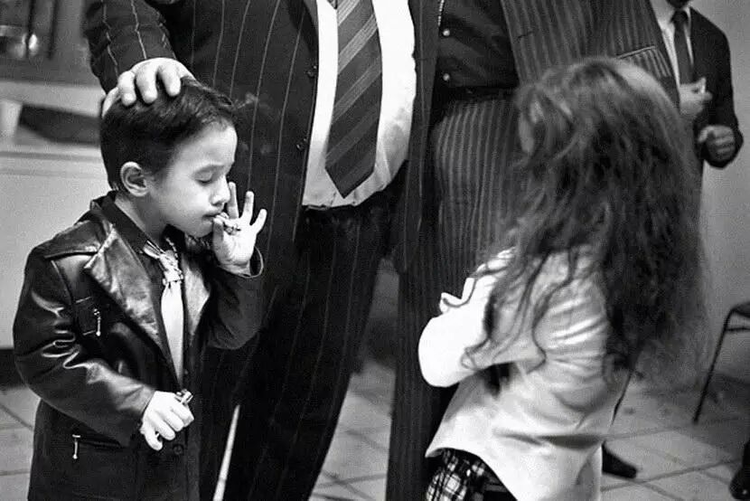 在法国南部一个正在抽烟的5岁吉普赛男孩儿,当时是2006年除夕的吉普赛社区聚会。