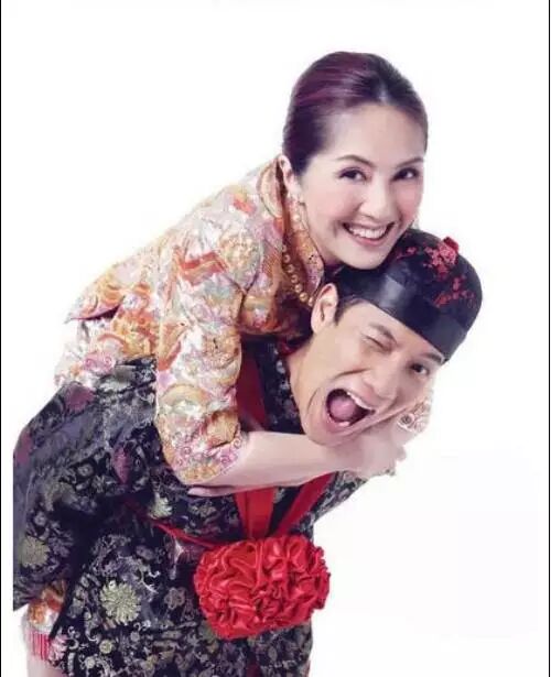 曹颖与王斑的婚纱照,同样身着经典的凤冠霞帔,隆重又大气,两人可爱的表情倒是和杨千嬅丁子高一样教会了我们拍婚纱照的好办法:如果担心自己被礼服包裹得太过生硬,那就用可爱的表情为照片增光添彩吧~