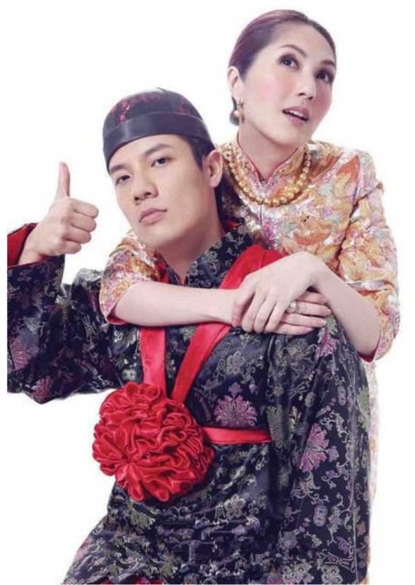 杨千嬅与丁子高两人的中式婚纱照胜在了两人活泼的Pose表情,这要归功于两人本就鬼马的性格,让中式婚纱照也能如此活泼有趣。还有一个亮眼的细节则是杨千嬅手中的手捧花,为这组中式婚纱照带来了一丝现代的时尚感。