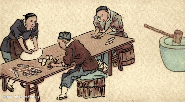 擦。用手掌根将面团一层层向前边推边擦的方法。主要适用于加工油酥面团和部分米粉面团。