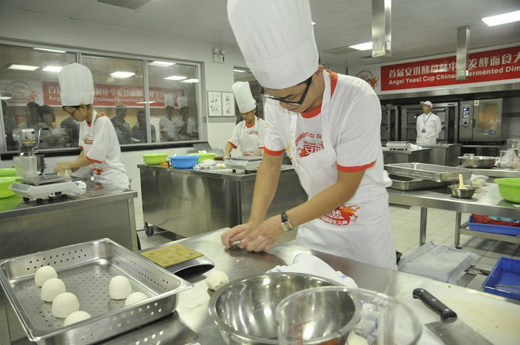三、操作动作干净利落。动作迅速,面和得均匀而不夹粉粒,和完后手不沾面,面不沾盆。