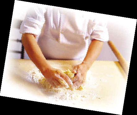 一、抄拌法。将面粉放入盆中,中间掏一个大坑,倒入一定量的水,双手伸入缸中,从外向内,由下向上,反复抄拌成团,要求用力均匀适当,手不沾水,以粉推水,促使、粉结合成团,为应用最多的和面方法,主要适用于和制用量较大的各类面团。