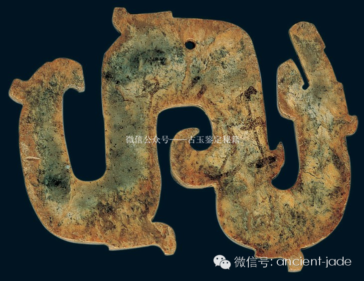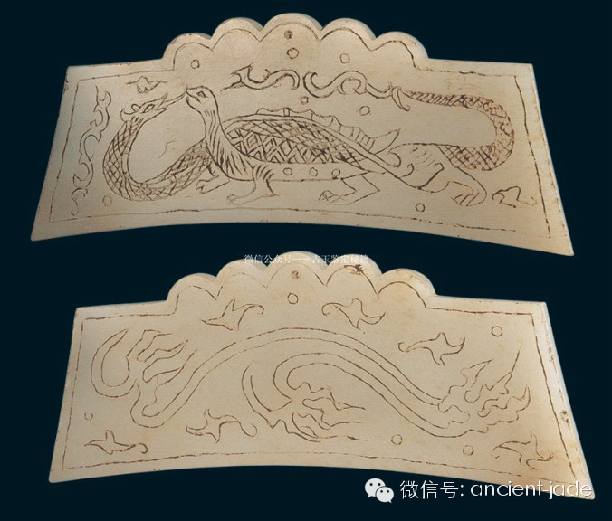 平山战国中山王墓出有五件表面墨书“珩”字玉龙佩,可明确为珩,它们中部拱起之处皆钻有孔,佩戴时恰作凸面向上,这不仅证明佩珩方式就是如此,同时反映了战国时期玉龙佩亦可充当玉珩在组玉佩中出现。此外,古文字学家唐兰先生亦曾考证“璜”为古字,而“珩”是春秋以后的新字,这也从侧面证实了东周组玉佩中珩对璜的替代。(以上为孙庆伟先生观点)