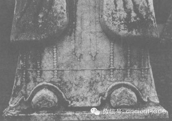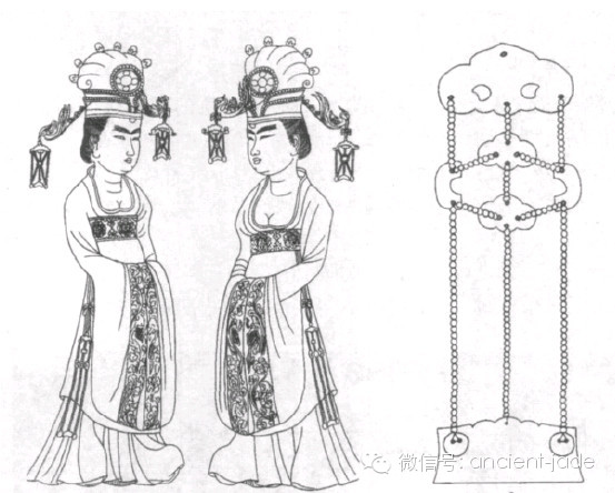 魏晋南北朝至隋唐时期的组玉佩皆佩戴在腰部以下,悬垂于身体一侧,是佩挂置革带上的装饰品,这从唐懿德太子墓石椁线刻女官所戴玉佩可见一斑。