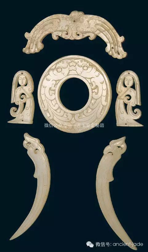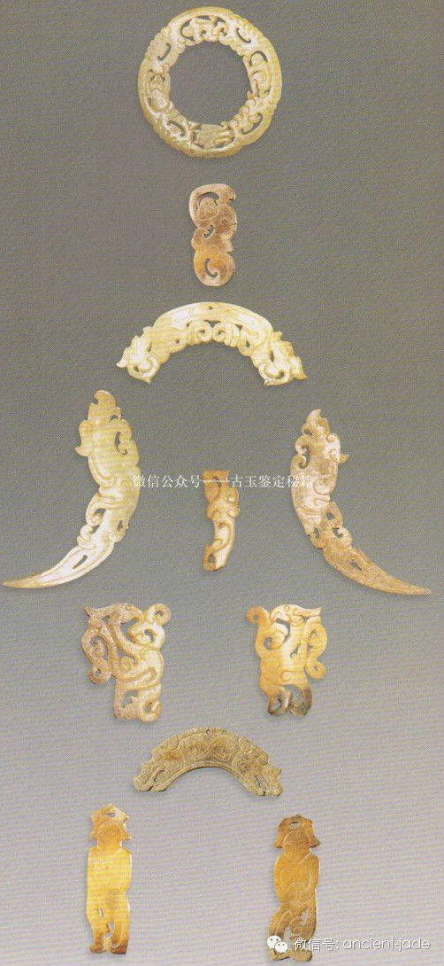 战国晚期至西汉中期,组玉佩的构件中又增加了玉舞人、玉冲牙以及其他形制的玉佩饰。