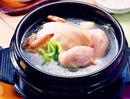 公鸡1只、糯米20克、枣(干)6颗、枸杞子10粒、香菇3朵、人参3分之1、食盐适量、姜少许、小葱少许