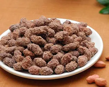 4,脸红也得加额多余水分。之后转小火,不停地翻炒大约30分钟,直至听到啪啪的响声,花生米就炒好了。