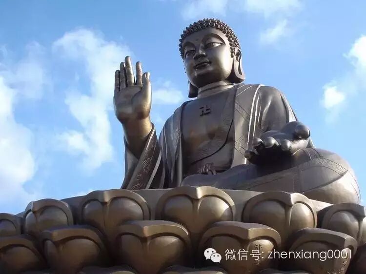 大佛慈颜微笑,广视众生,右手“施无畏印”代表除却痛苦,左手“与愿印”代表给予快乐,均为祝福之相。