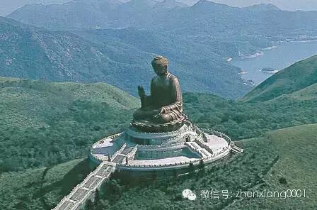 香港的天坛大佛,释迦牟尼座像,锡青铜材料,通高26.4米,重220吨,公元1993年建成。天坛大佛座落在香港大屿山海拔520米的昂平,是香港受欢迎的旅游景点之一。是全球最大的青铜座佛。佛像坐在268级的石阶上,端坐的佛像庄严肃穆,无论远观近看,都予人宁静祥和的感觉。美国权威地理旅游杂志《国家地理旅行者》极力推荐天坛大佛这项名胜。