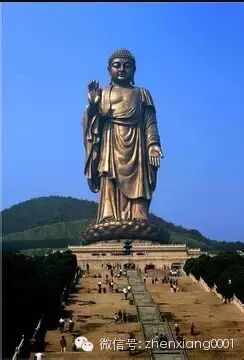 江苏的灵山大佛,释迦牟尼立像,青铜材料,通高88米,重700吨,佛体79米,莲花瓣9米。公元1997年建成。