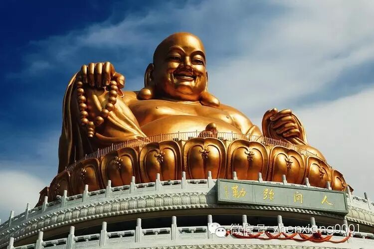 浙江奉化溪口雪窦山露天弥勒大佛,2008年建成,是典型的中国化弥勒佛像。佛像具有比丘相、罗汉身、菩萨意、布袋形、佛之像。大佛用500多吨锡青铜铸造,佛像身高33米,表示弥勒身居33层天;莲花座高9米,另加基座14.74米,共56.74米。佛像集壮观、神圣、雄伟、高大于一身,为天下铜铸座像之最。奉化是佛教界普遍认同的弥勒化身--布袋和尚的家乡,留有许多布袋弥勒的文化遗迹。