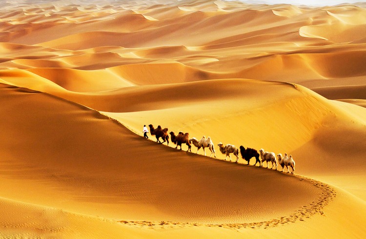 库木塔格,维吾尔语是“沙山”之意。库木塔格沙漠的形成,主要是因为来自天山七角井风口和达坂城风口的狂风,沿途经过长风程,挟带着大量沙子,最后在库木塔格地区相遇碰撞并沉积,形成“有沙山的沙漠”这一独特的景观。让人不禁赞叹“大漠孤烟直,长河落日圆”的壮景。
