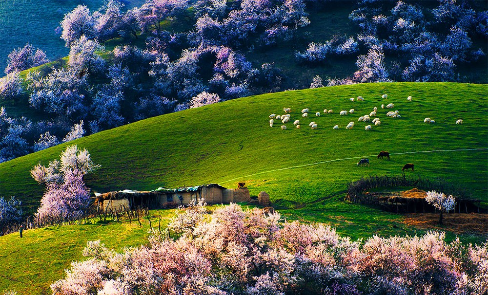 杏花沟位于新疆伊犁县新源县吐尔根乡,伊犁河谷阿吾拉勒山南麓。得益于伊犁盆地湿润气候的影响,加上有来自天山充沛的冰川融水的滋润,杏花沟上万亩原始杏花树,几百年来,野生生长,生生不息。