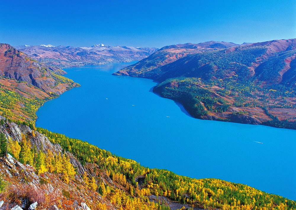 喀纳斯湖位于新疆阿勒泰地区。外形呈月牙,被推测为古冰川强烈运动阻塞山谷积水而成。