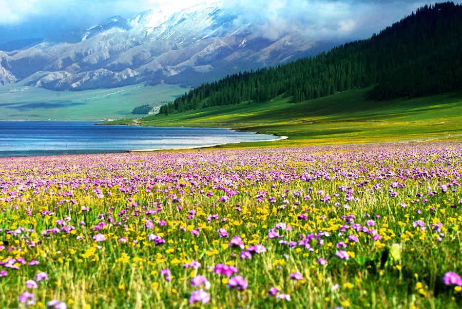草原5-8月碧草茵茵,盛夏之际雨水丰富、日照充足,各种野花恰似点点繁星开遍山野。夏季跟随来到喀拉峻草原,如同步入花的海洋,暑气顿消。