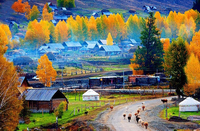 在前往白哈巴的路上会经过一条“盘龙道”,沿着深深的峡谷盘旋前进,而峡谷对面就是哈萨克斯坦的国土了。虽然国界近在咫尺,但白哈巴是宁静悠然的,它被誉为中国最美的八个小镇之一,这里有着原始森林、原木小屋、袅袅炊烟、淡淡晨雾和豪爽却带点神秘色彩的居民,带你去体验现实中的童话王国。