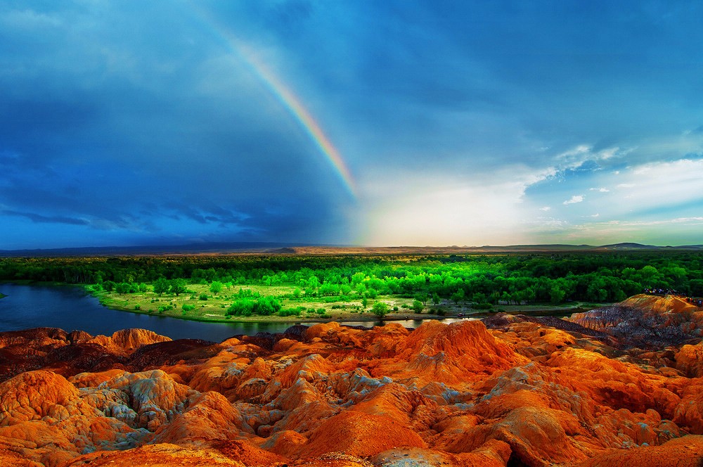 在风力及其他自然因素的共同作用下,这里的岩石轮廓不一,每当在阳光的照射之下,五彩滩将变得美轮美奂,色彩斑斓,引人入胜。