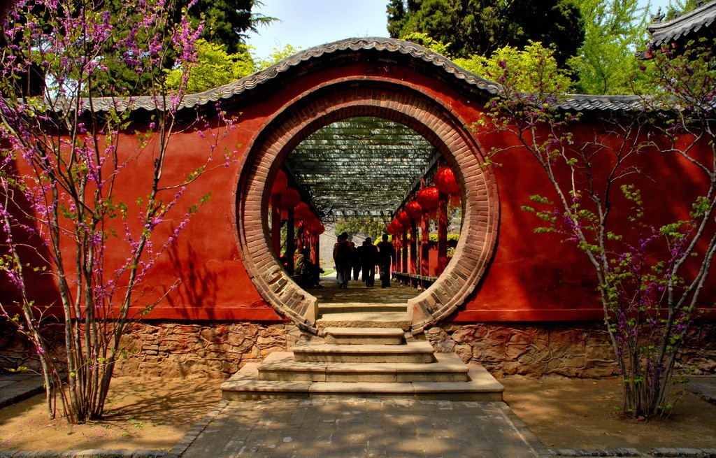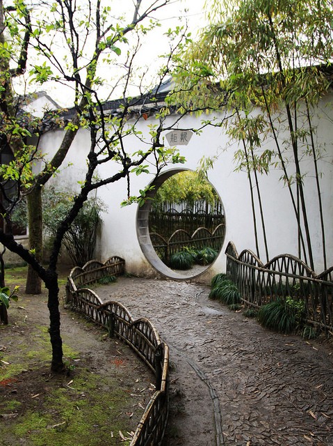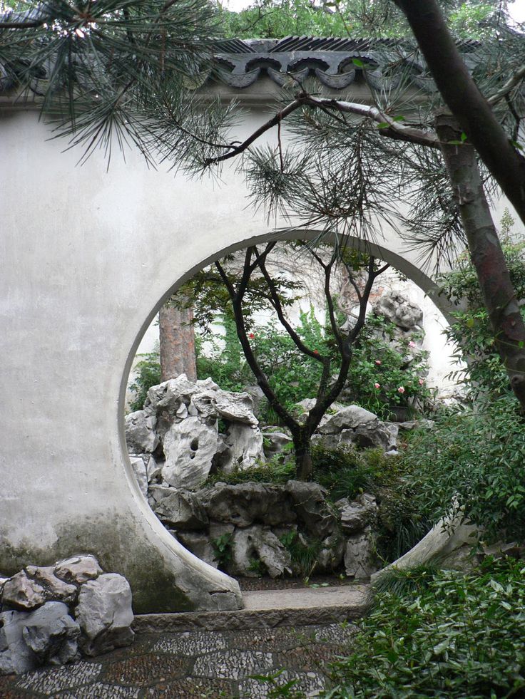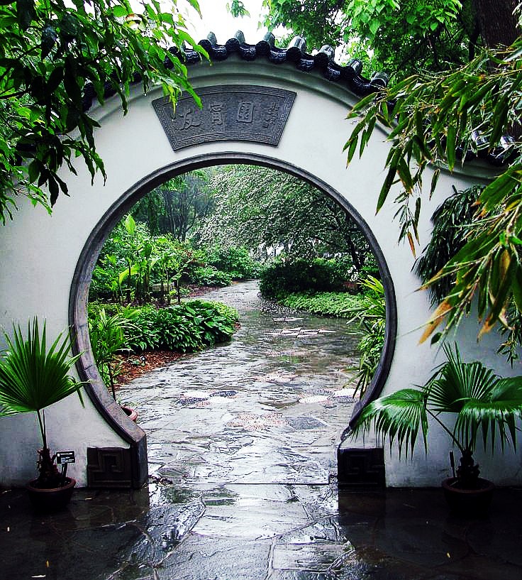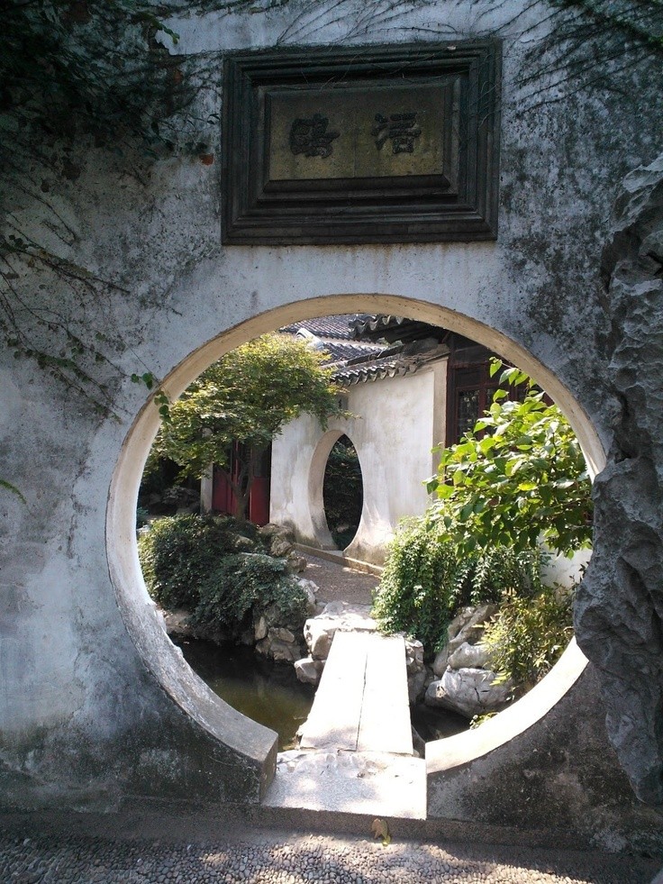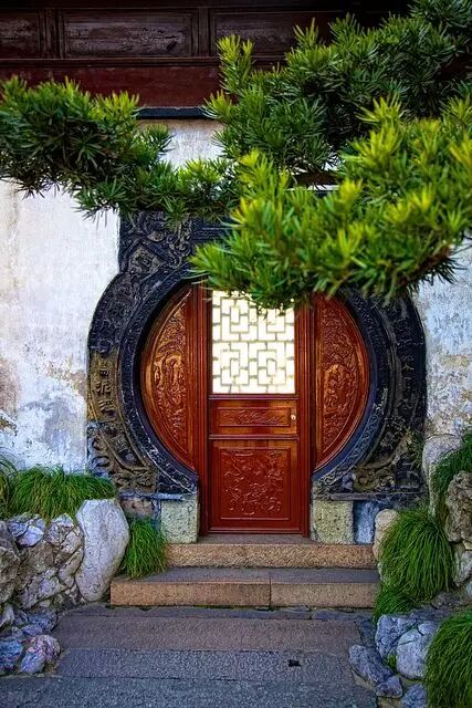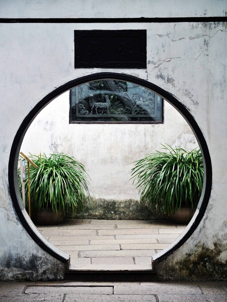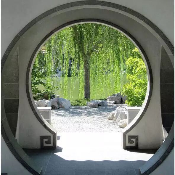 導讀|洞门仅有门框而没有门扇,常见的是圆洞门,其作用不仅引导游览、沟通空间,本身又成为园林中的装饰。通过洞门透视景物,可以形成焦点突出的框景。采取不同角度交错布置园墙、洞门,在强烈的阳光下会出现多样的光影变化。