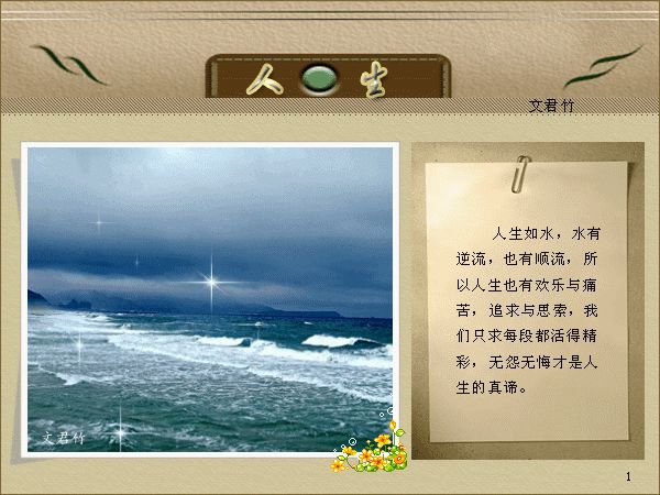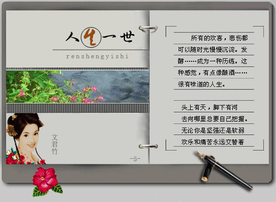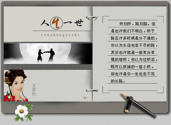 漫长的人生也是瞬间人生, 让心孤独地去感悟吧, 也许当心伤痕累累、 流尽最后一滴心泪的时候, 人生就不再有漫长, 也就没有了瞬间!