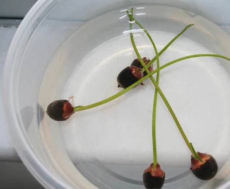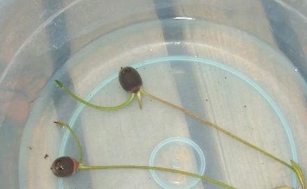 将已破壳的种子,浸于温水中,可把浸种盆直接放置在阳光下催芽,每天换1-2次水,1周内可以发芽。