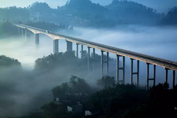 经过@易中乐老师等一众摄影师的美图奉送,这座桥在摄影圈为人所知,被摄影人誉为“重庆的牛背山”,有着美丽迷人的云雾景观,有到现场深受感染的人曾说:"何必要去牛背山?"(好大的口气,暂不予置评)