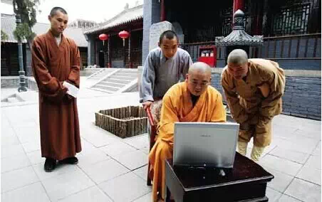 少林寺僧人室内上网冲浪,要是用互联网宣传佛法也无可厚非,但居然还安个摄像头,怎不令人起疑
