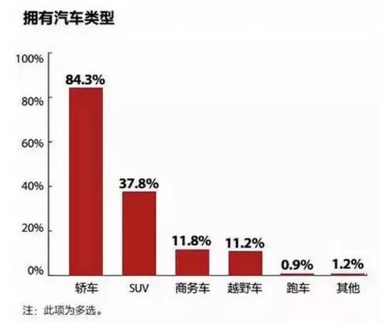 汽车是整个大众富裕阶层生活的必需品,购车对这一阶层来说,并不是很大的负担。但与游艇这种奢侈爱好相比,他们购车时可现实有营养多了。在拥有的汽车中,“轿车”是最普遍的选择,其次是“SUV”,“商务车”和“越野车”的选择比例则相对不高,只有0.9%的人会选择跑车,而20—30万和30—50万的汽车是他们最青睐的价位选择。