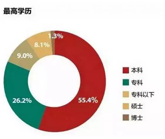 受访大众富裕阶层的学历总体较高,拥有本科及以上学历的占64.8%。其中,本科学历为55.4%,硕士及博士学历的也有将近10%的比例。