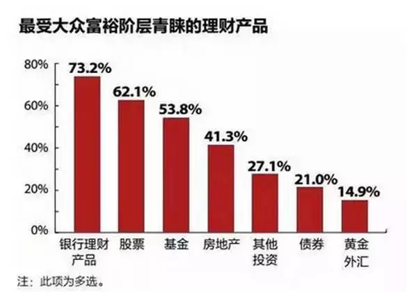 银行理财产品、股票和基金是大众富裕阶层最青睐的三种理财产品,可见,这个群体在投资时还是很稳重的。