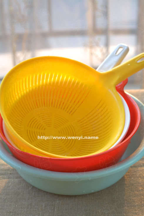 塑料洗菜盆,塑料饭盒,塑料案板,塑料筷子,塑料漏网,塑料杯子,塑料勺子,塑料盘子…….