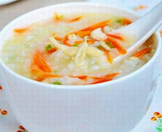 食材:大米 50g、胡萝卜 100g、菊花10g、白糖适量、盐适量。
