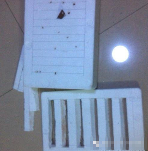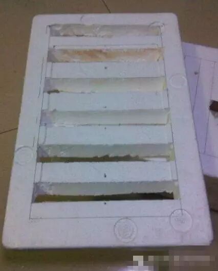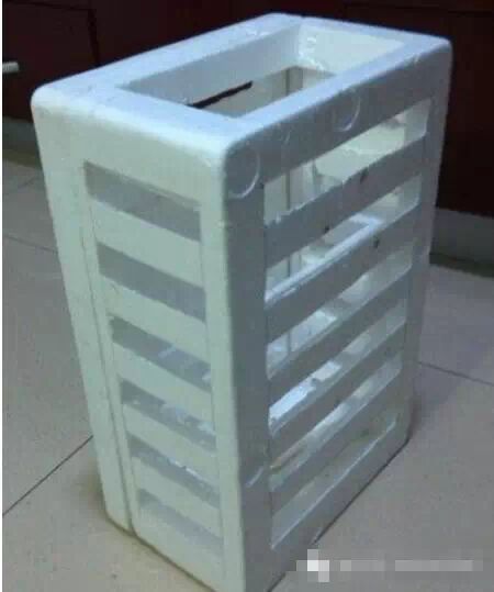 2、用美工刀将泡沫箱按预定尺寸切割,侧面四周种植槽的切割方向为斜45度。