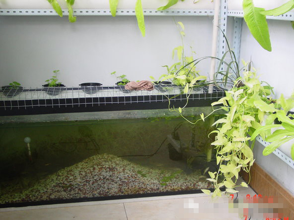 这是卧室内的主鱼缸,通过里面那根管子把水通往阳台循环(你没有看错,那就是鲟鱼)