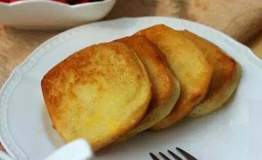 3.锅内倒油,馒头片均匀的粘上鸡蛋液,小火下锅煎,煎至两面金黄即可。
