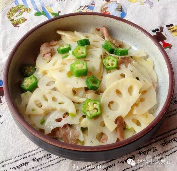 材料:莲藕2根(九孔)、秋葵2根、胡萝卜半根、葵花子油、盐巴、生抽、鸡精各适量;