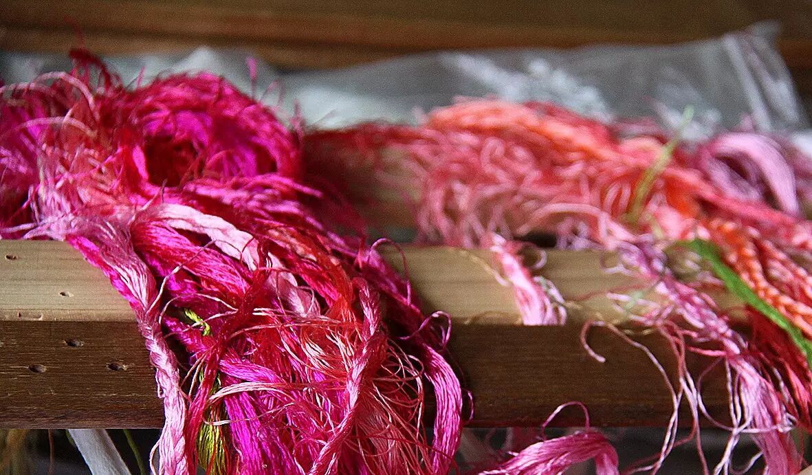 同为陈氏广绣传人的黄敏健老师告诉我们,传统的绣品,在色彩上比较单一,只讲究明暗;在构图上更注重表现细腻而不是立体。而陈氏绣法独创的“丝线色彩构成法”。则会根据环境和光影的变幻,将不同颜色的丝线组合在一起,以丝线的疏密控制画面的颜色和亮度──深红、浅红、泛绿的红、泛金的红……层层叠叠,最终形成一副色彩斑斓耀目的画。