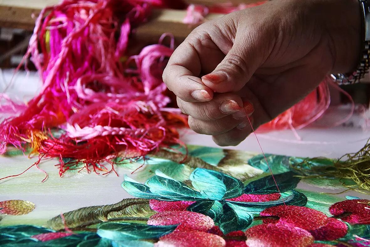 陈氏绣法在广绣步入没落的岁月里,创造性地传承了广绣中西贯通的文化渊源,对于学过西方油画并继承着陈氏绣法的谭展鹏、黄敏健夫妇来说,在现在这个时代,少说多做,“拥有足够的耐心才能让一切变得更好”。