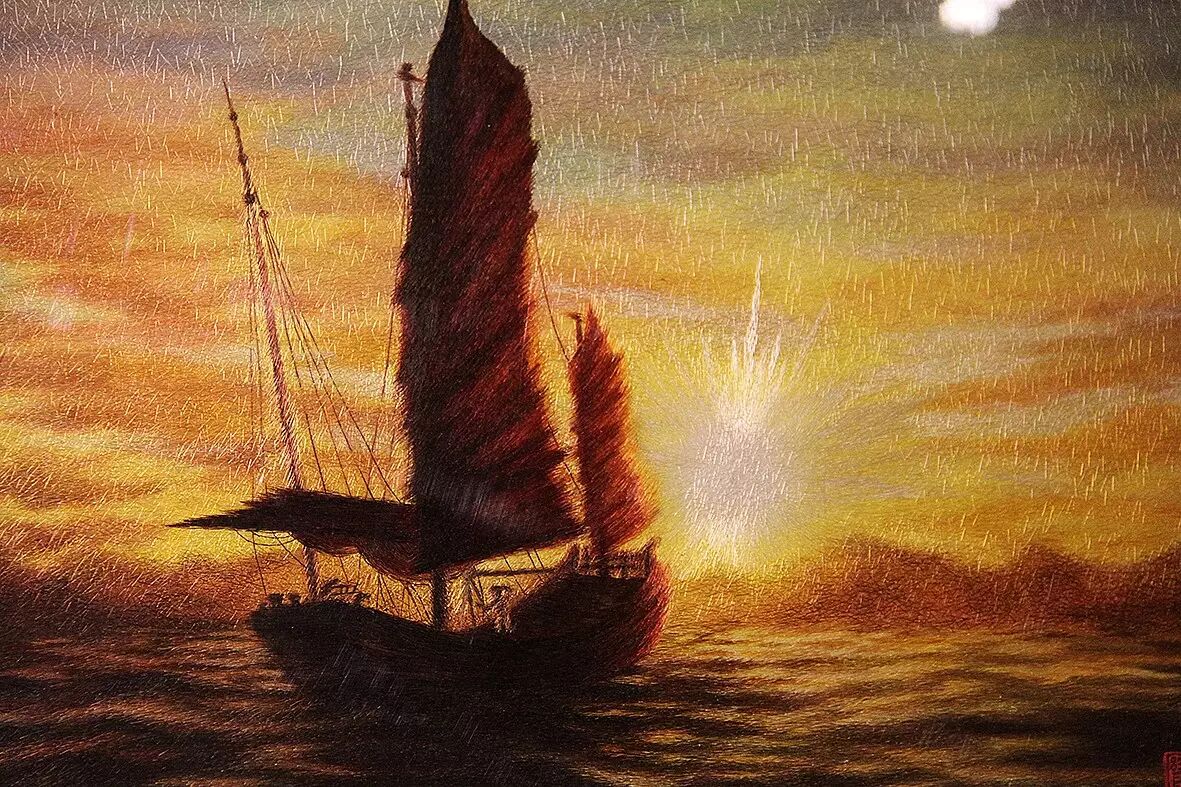 什么是工艺,工是娴熟的技法,而艺是灵魂的表达和创造。“你们如果在大海上看到过日出就会知道,太阳破云而出的时候是扁圆的,太阳的光芒也不完全是金色的,靠近海的地方,是蓝、金和红交织在一起的,所以在海天交接的地方要特别细致地配色,慢慢地绣,才不致于变成一片死板的颜色。”