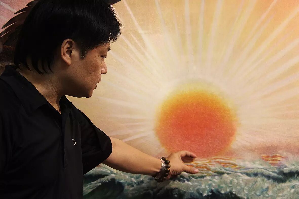 从与大海搏斗的刺激到静心传承的寂寞,曾经当过海员的谭展鹏老师把对海的思念和回归传承广绣的决心,一针一针地绣进了这幅大鹏展翅的海上日出中。当心手合一的时候,我们发现,刺绣不再是简单的工艺,而真正成为了一种顶尖的艺术。