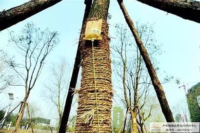 反季节移植,控制树体水分蒸发,可在树干圆周用草帘子绑扎,然后用塑料薄膜捆绑,冬天可用此方法防寒。关键点是要在塑料薄膜捅若干小孔适当透气,这种方式比单用塑料薄膜效果要好,草帘子(好于草绳)可以调控膜内水分及温度,从而很好的保存树体水分,为树木成活创造了基本条件。