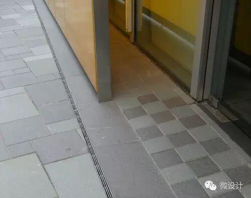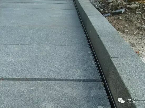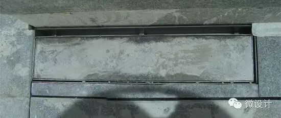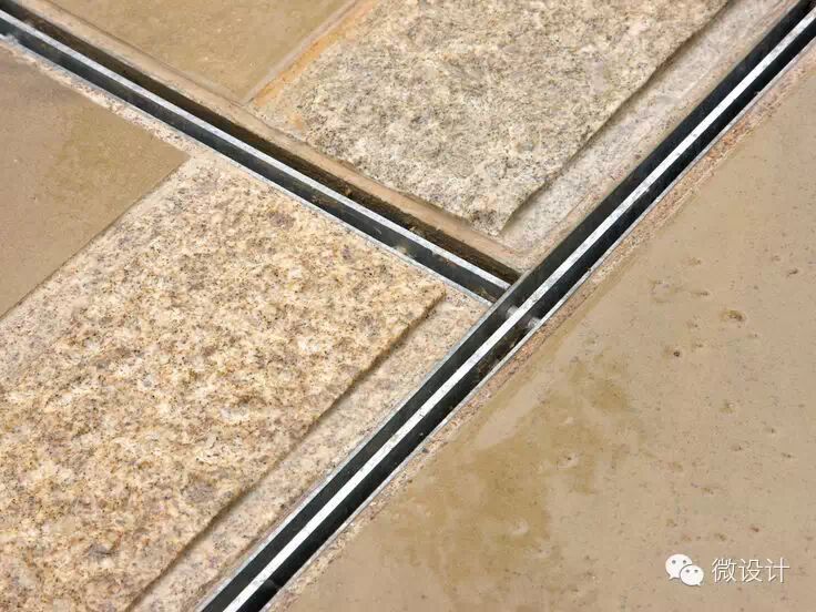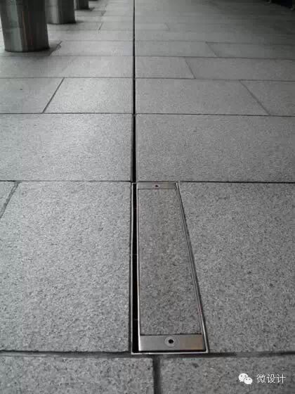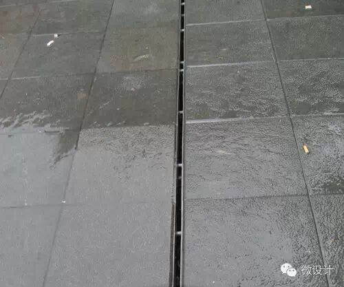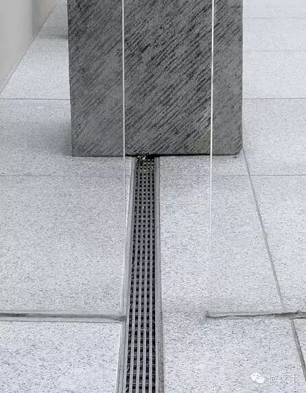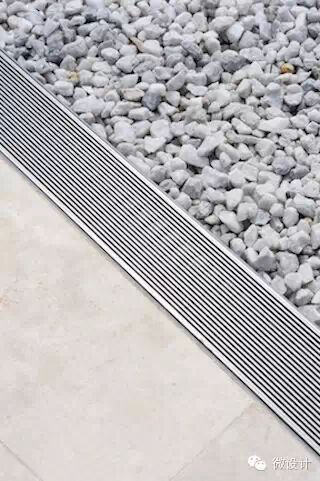 我国最常用的就是“缝隙式线性排水系统”,下面主要给大家介绍一下,缝隙式顾名思义就是一条缝隙,每条缝隙连接一起就形成一条线,这就形成了我们所要的“缝隙式线性排水系统”的效果,缝隙式排水从表面看就是在铺装面上留下一条15-20毫米的缝隙,但也可以根据排水量大小加宽缝隙,缝隙式排水的效果比较时尚大方美观,隐蔽性很好,不会因有排水沟的设置而影响设计效果。