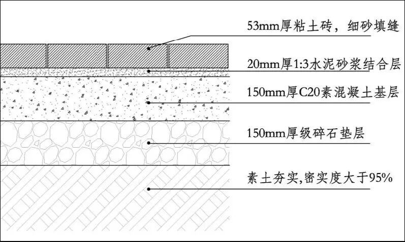四:车行道:烧结粘土砖路面