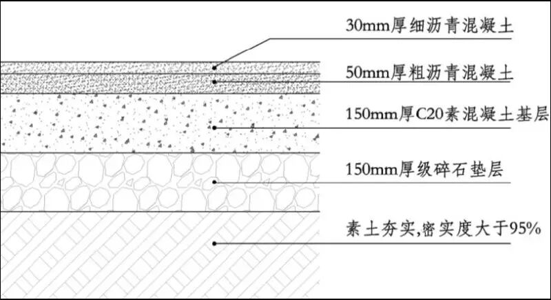 构造做法:30mm厚细沥青混凝土