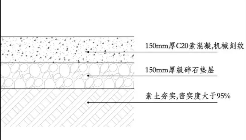 构造做法:150mm厚C20素混凝土,机械刻纹