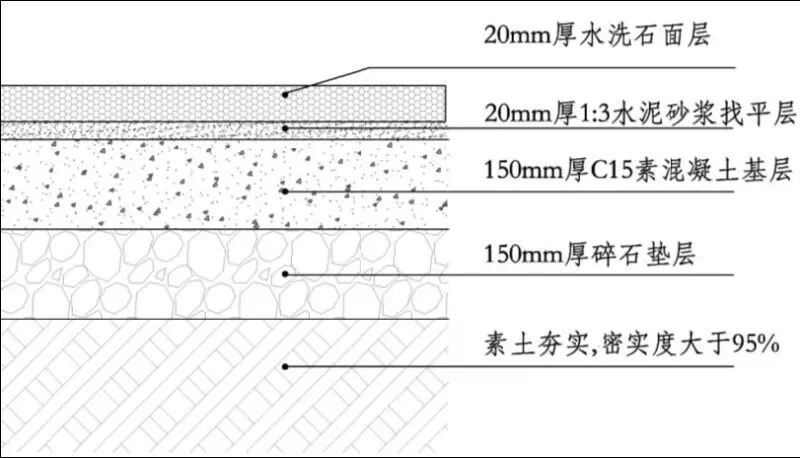 构造做法:20mm厚水洗石面层