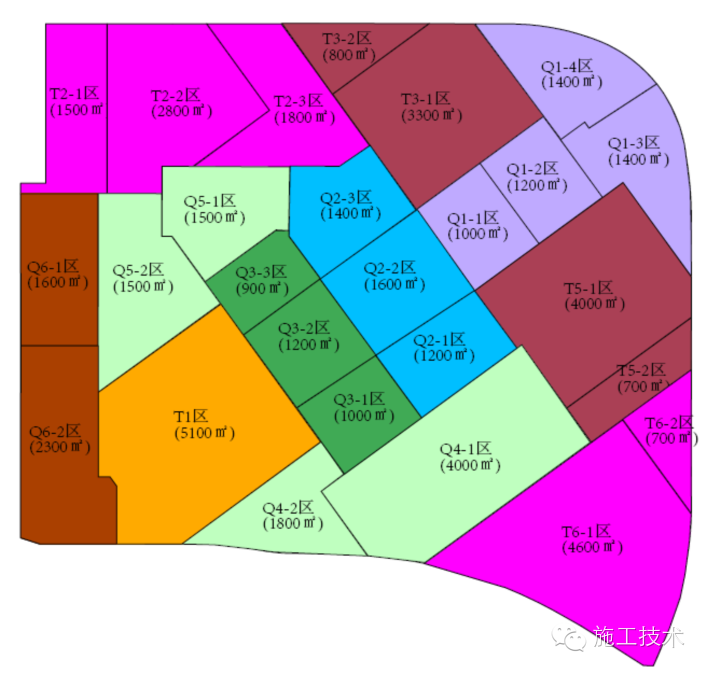 该工程地下室施工体量大,地下室总建筑面积达到了24万㎡,由于施工工期紧张,25个小分区同时施工。