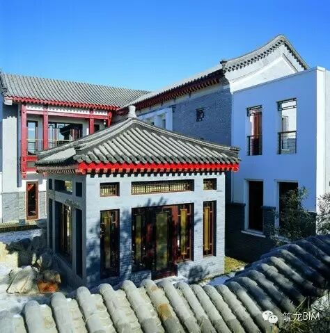 北方合院派:北方的合院派建筑在外观上采用了北京四合院的灰色坡屋顶、筒子瓦及一定高度的墙院围合方式,材质上多选用地域色彩浓厚的灰砖,空间结构上尽可能多地设计庭院空间,以追求四合院的全包围形式。