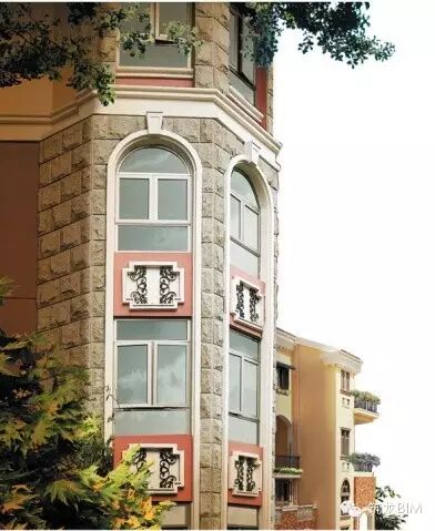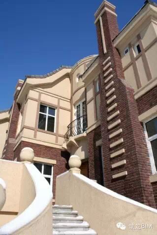细节处理细腻精巧:经常运用螺旋形结构配件,包括阳台、窗间柱子等多用螺旋形铸铁花饰。此外,往往采用建筑圆角,让外立面更富动感,外墙局部用文化石和特别的涂料,露台上采用弧形栏杆等,而装饰性用的烟囱带有传统英国风味。
