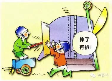 ◆机械工作时,将头手伸入机械行程范围内。